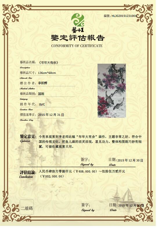 艺+1 艺术品鉴证质量溯源鉴证证书
