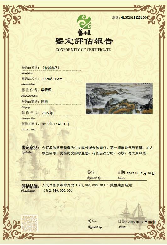 艺+1 艺术品鉴证质量溯源鉴证证书