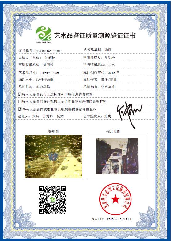 艺+1 艺术品鉴证质量溯源鉴证证书