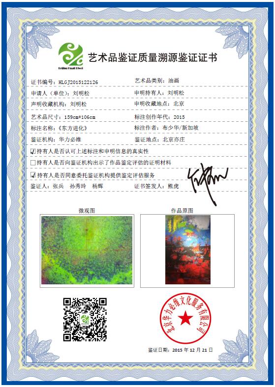 艺+1 艺术品鉴证质量溯源鉴证证书