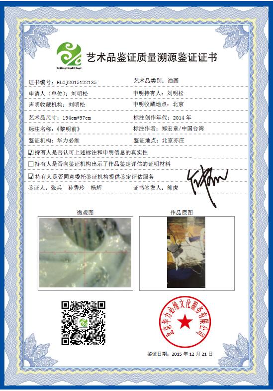 艺+1 艺术品鉴证质量溯源鉴证证书