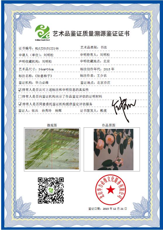 艺+1 艺术品鉴证质量溯源鉴证证书