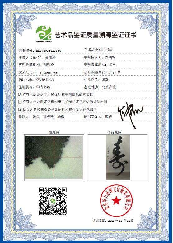 艺+1 艺术品鉴证质量溯源鉴证证书