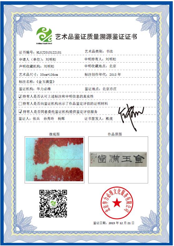 艺+1 艺术品鉴证质量溯源鉴证证书