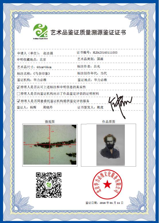 艺+1 艺术品鉴证质量溯源鉴证证书