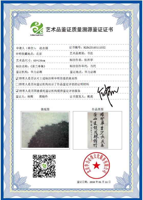 艺+1 艺术品鉴证质量溯源鉴证证书