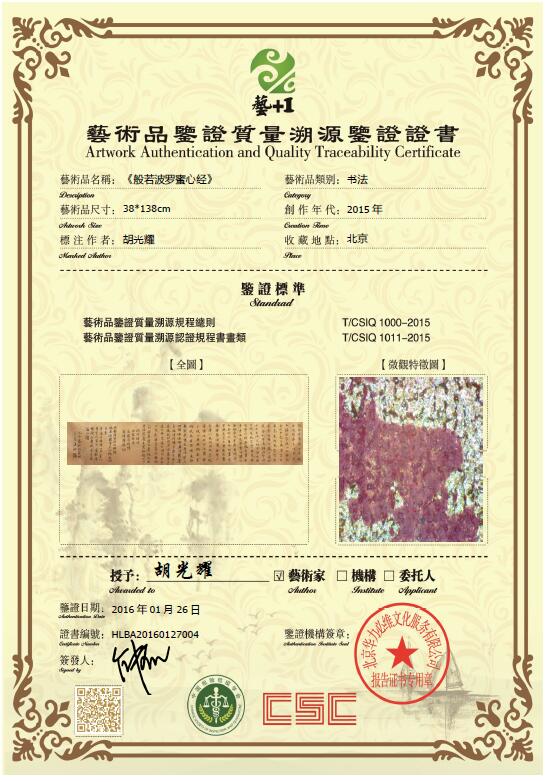 艺术品鉴证质量溯源鉴证证书