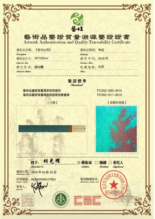 艺术品鉴证质量溯源鉴证证书