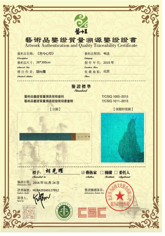 艺术品鉴证质量溯源鉴证证书