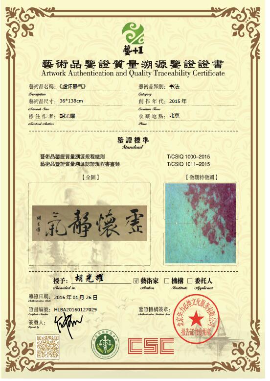 艺术品鉴证质量溯源鉴证证书