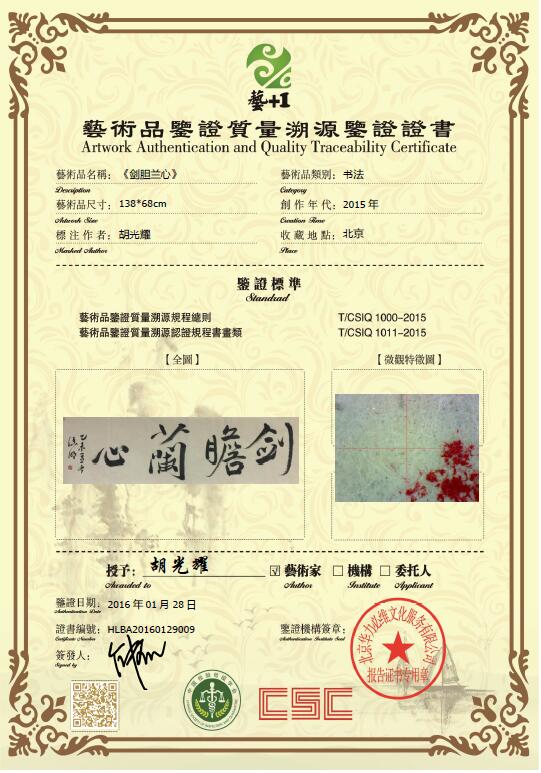 艺术品鉴证质量溯源鉴证证书