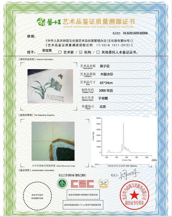 艺术品鉴证质量溯源鉴证证书