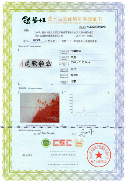 艺术品鉴证质量溯源鉴证证书