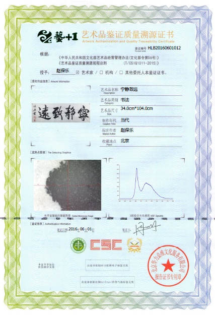 艺术品鉴证质量溯源鉴证证书