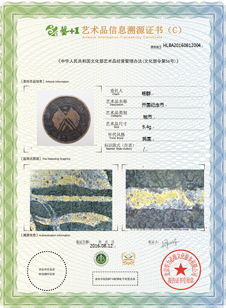 艺术品信息溯源鉴证证书