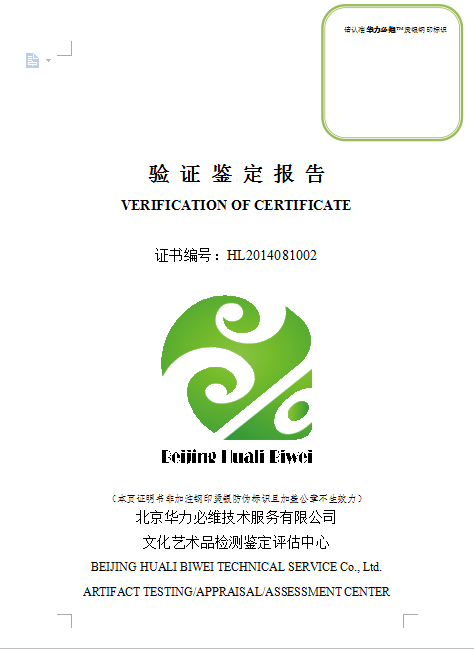 1. 作品描述 2. 作品鉴赏及综合评价 3. 作者自述 4. 作品艺术自述 5. 持有人自述 6. 作者艺术背景介绍 7. 专家意见汇总 8. 专家现场查验图片 附件1:机构及其合作单位资质介绍 附件2:专家资质介绍 |