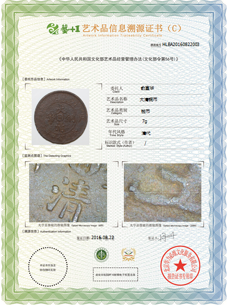 艺术品信息溯源证书