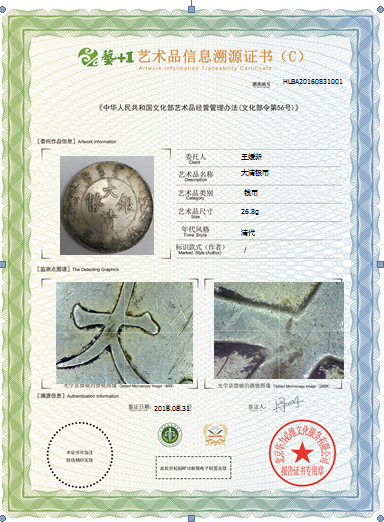 艺术品信息溯源鉴证证书