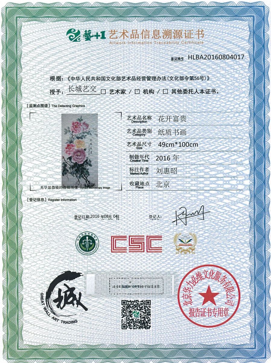 艺术品鉴证质量溯源鉴证证书