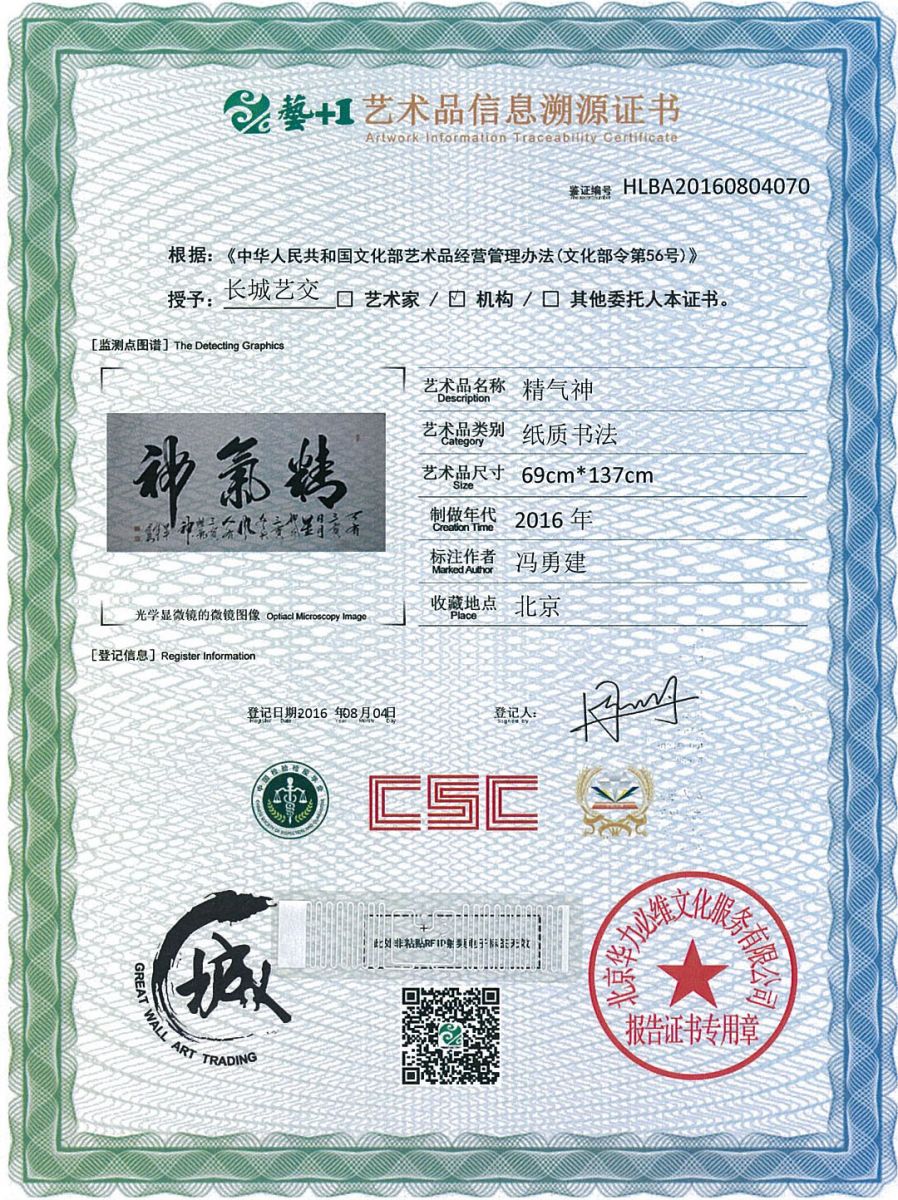艺术品鉴证质量溯源鉴证证书