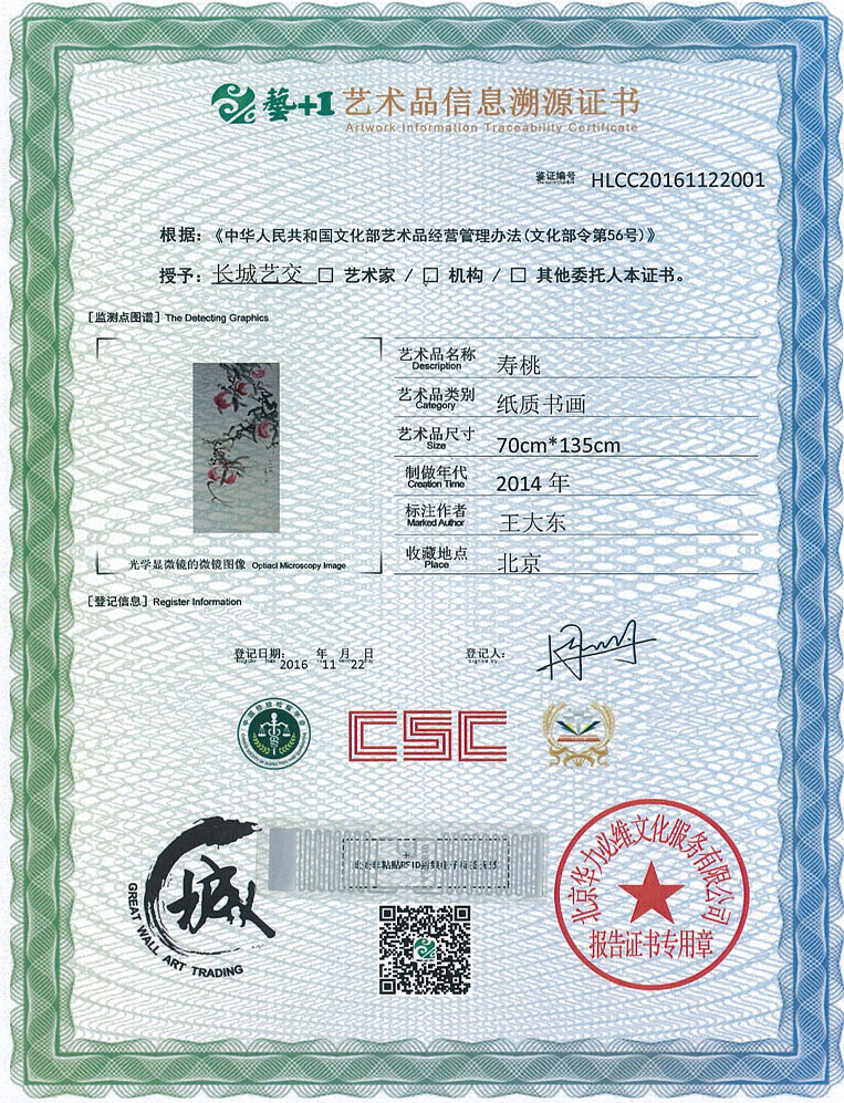 艺术品鉴证质量溯源鉴证证书