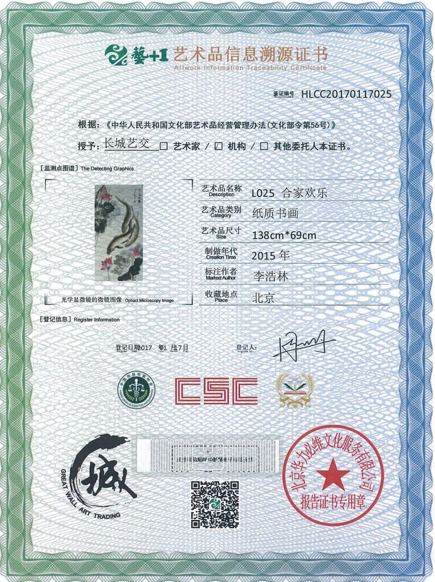 艺术品鉴证质量溯源鉴证证书