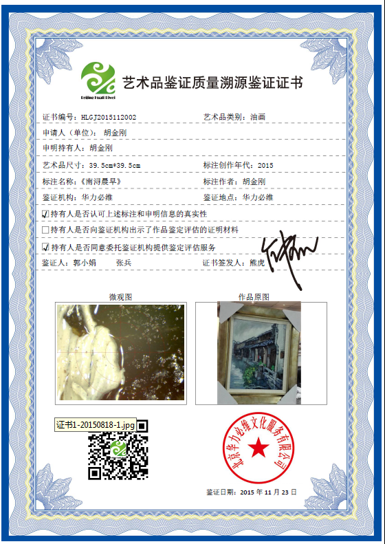 艺术品鉴证质量溯源鉴证证书