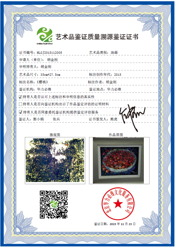 艺术品鉴证质量溯源鉴证证书