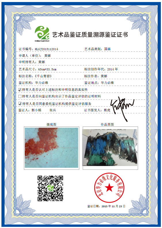 艺术品鉴证质量溯源鉴证证书