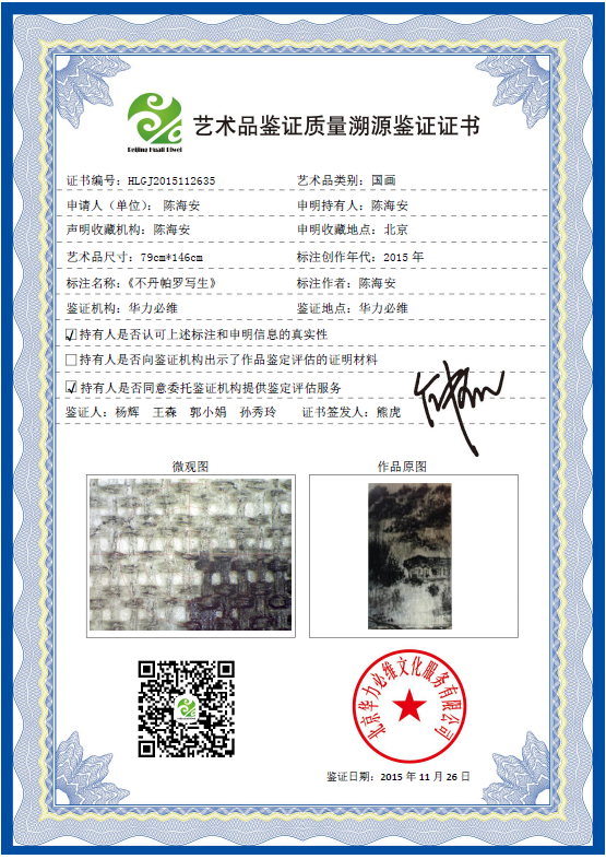 艺术品鉴证质量溯源鉴证证书