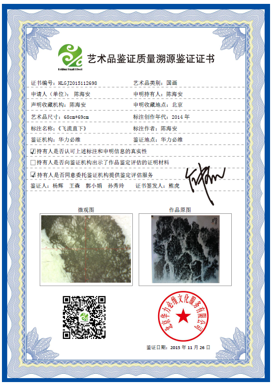 艺术品鉴证质量溯源鉴证证书