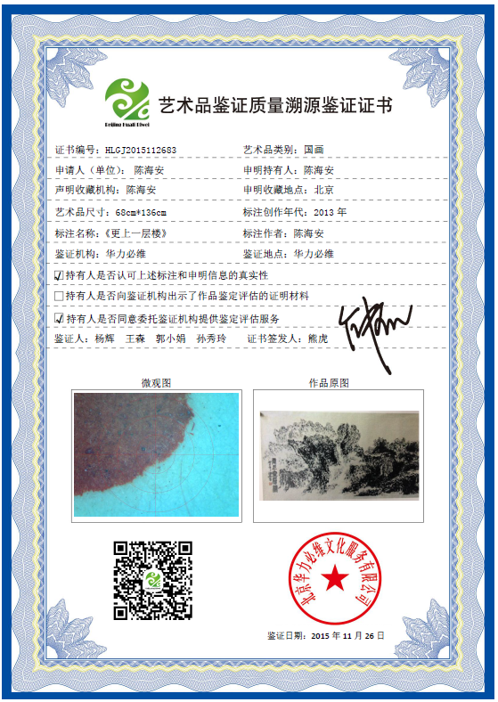 艺术品鉴证质量溯源鉴证证书