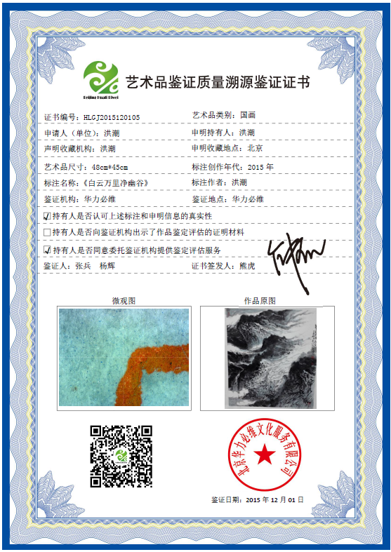 艺术品鉴证质量溯源鉴证证书