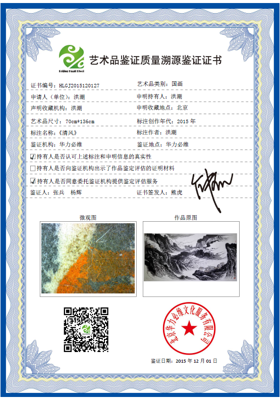 艺术品鉴证质量溯源鉴证证书