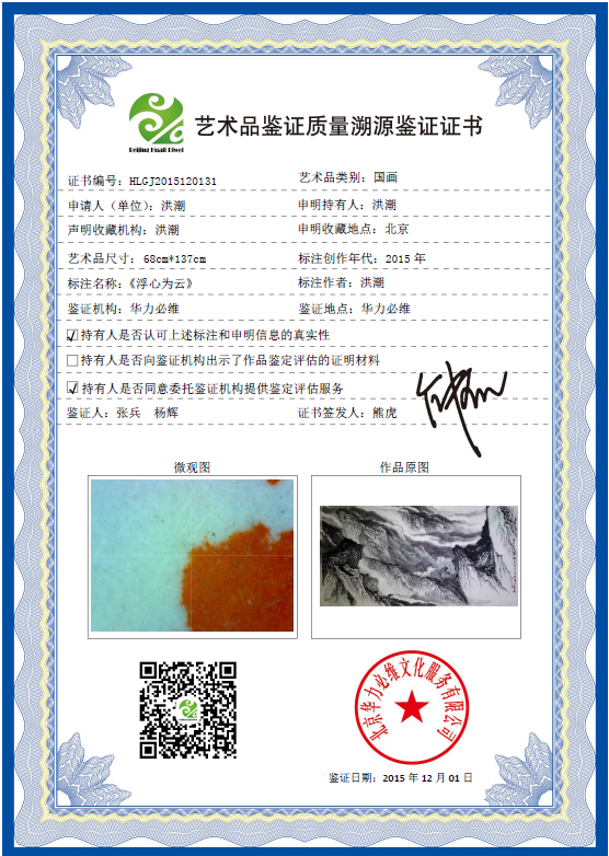 艺术品鉴证质量溯源鉴证证书