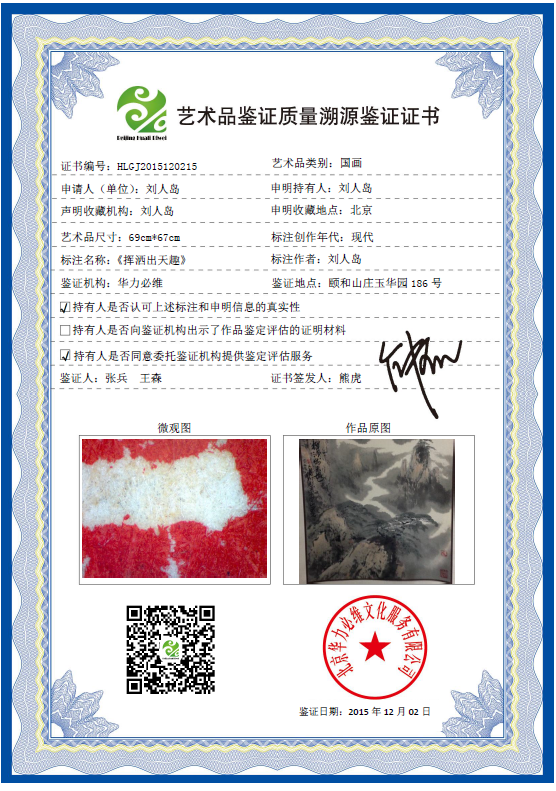 艺术品鉴证质量溯源鉴证证书