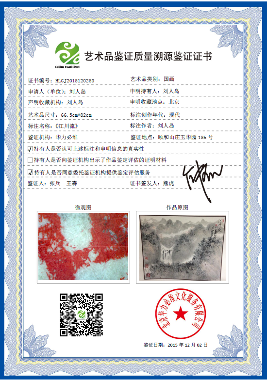 艺术品鉴证质量溯源鉴证证书
