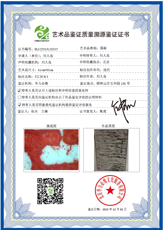 艺术品鉴证质量溯源鉴证证书