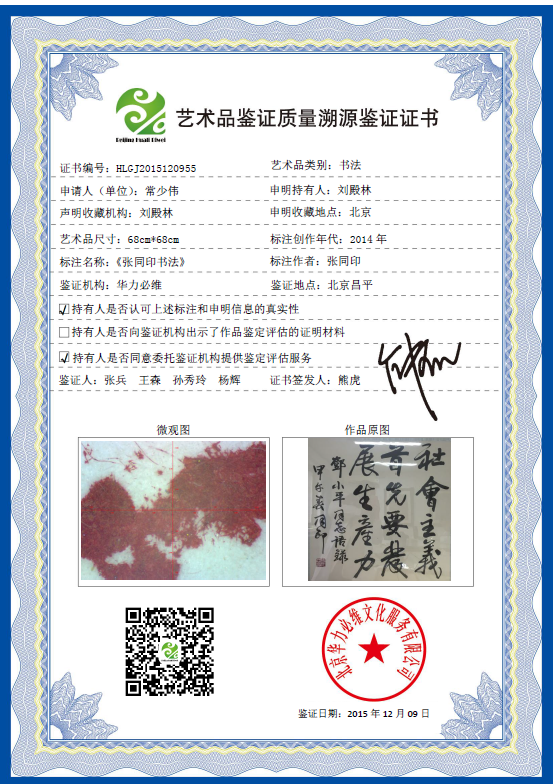 艺术品鉴证质量溯源鉴证证书