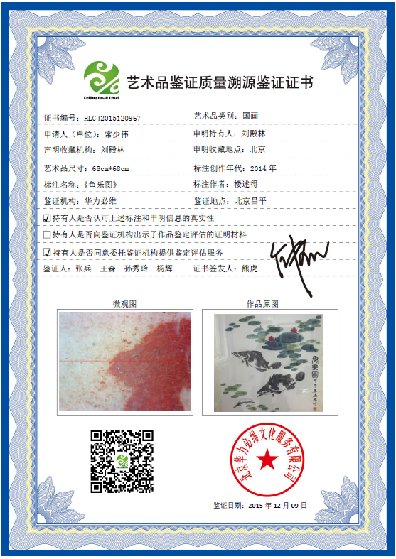 艺术品鉴证质量溯源鉴证证书