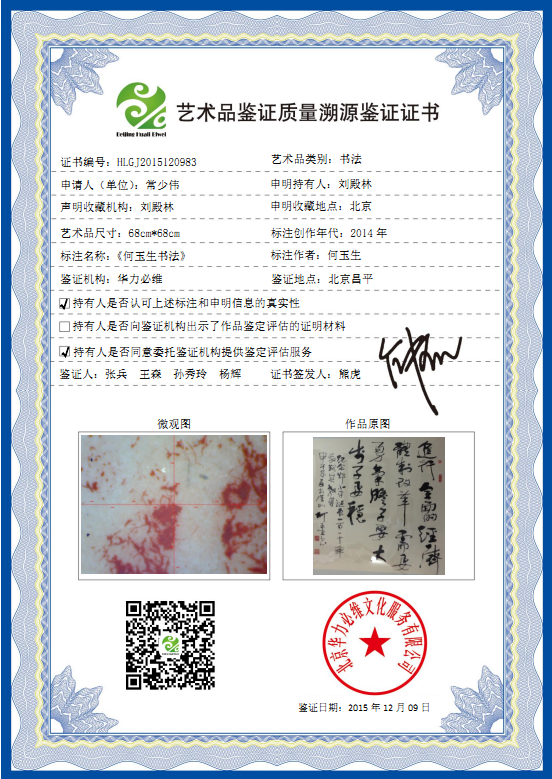 艺术品鉴证质量溯源鉴证证书