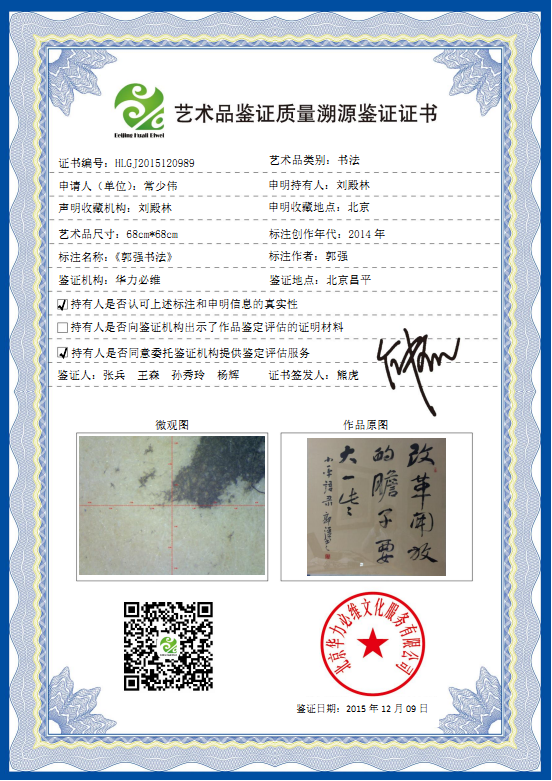 艺术品鉴证质量溯源鉴证证书