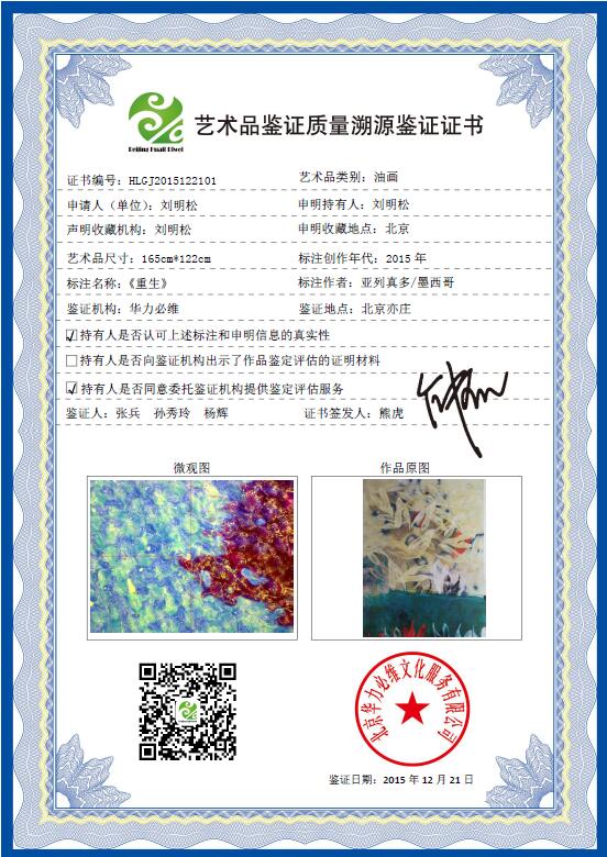 艺+1 艺术品鉴证质量溯源鉴证证书