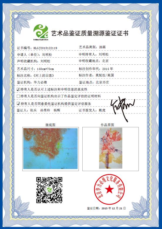 艺+1 艺术品鉴证质量溯源鉴证证书