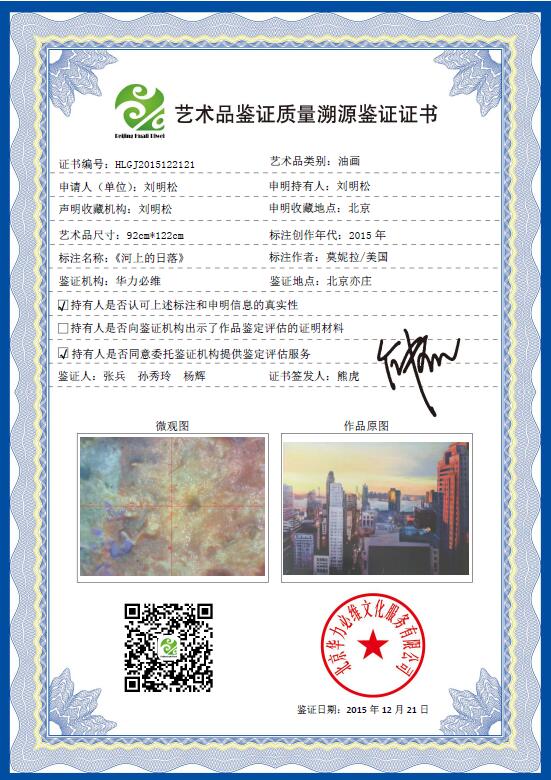 艺+1 艺术品鉴证质量溯源鉴证证书