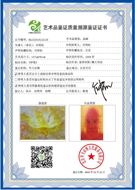 艺+1 艺术品鉴证质量溯源鉴证证书