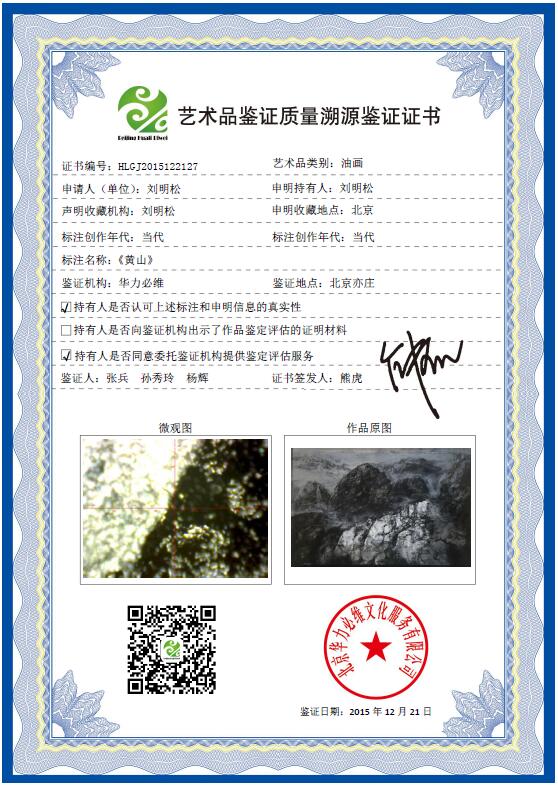 艺+1 艺术品鉴证质量溯源鉴证证书