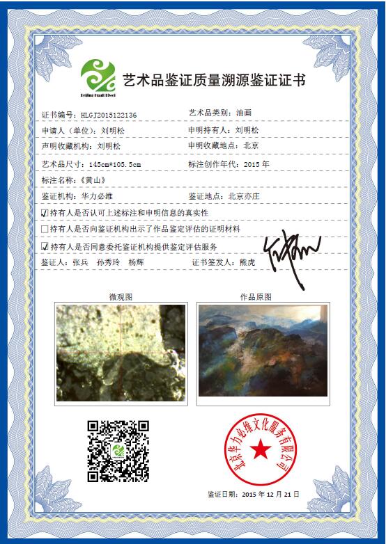 艺+1 艺术品鉴证质量溯源鉴证证书