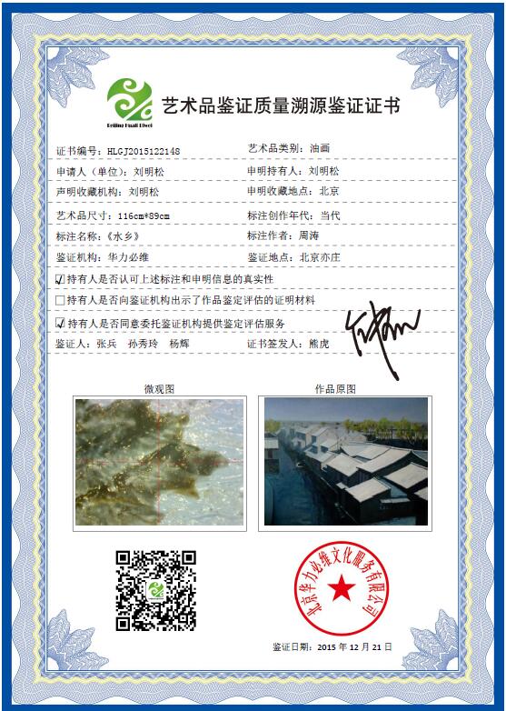 艺+1 艺术品鉴证质量溯源鉴证证书