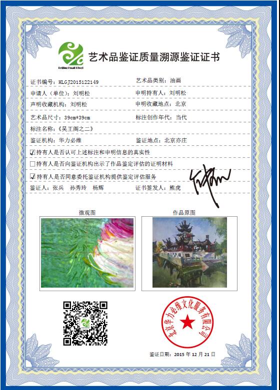 艺+1 艺术品鉴证质量溯源鉴证证书